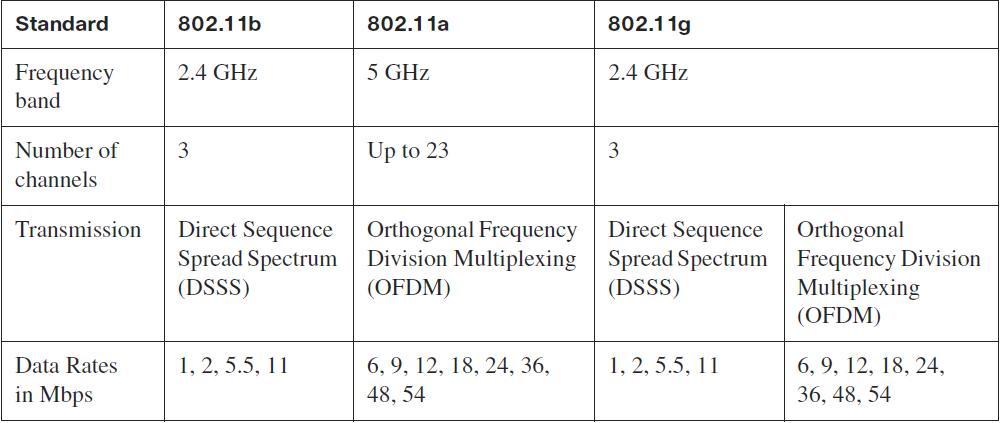 Table 3-1. 802.11 Standards